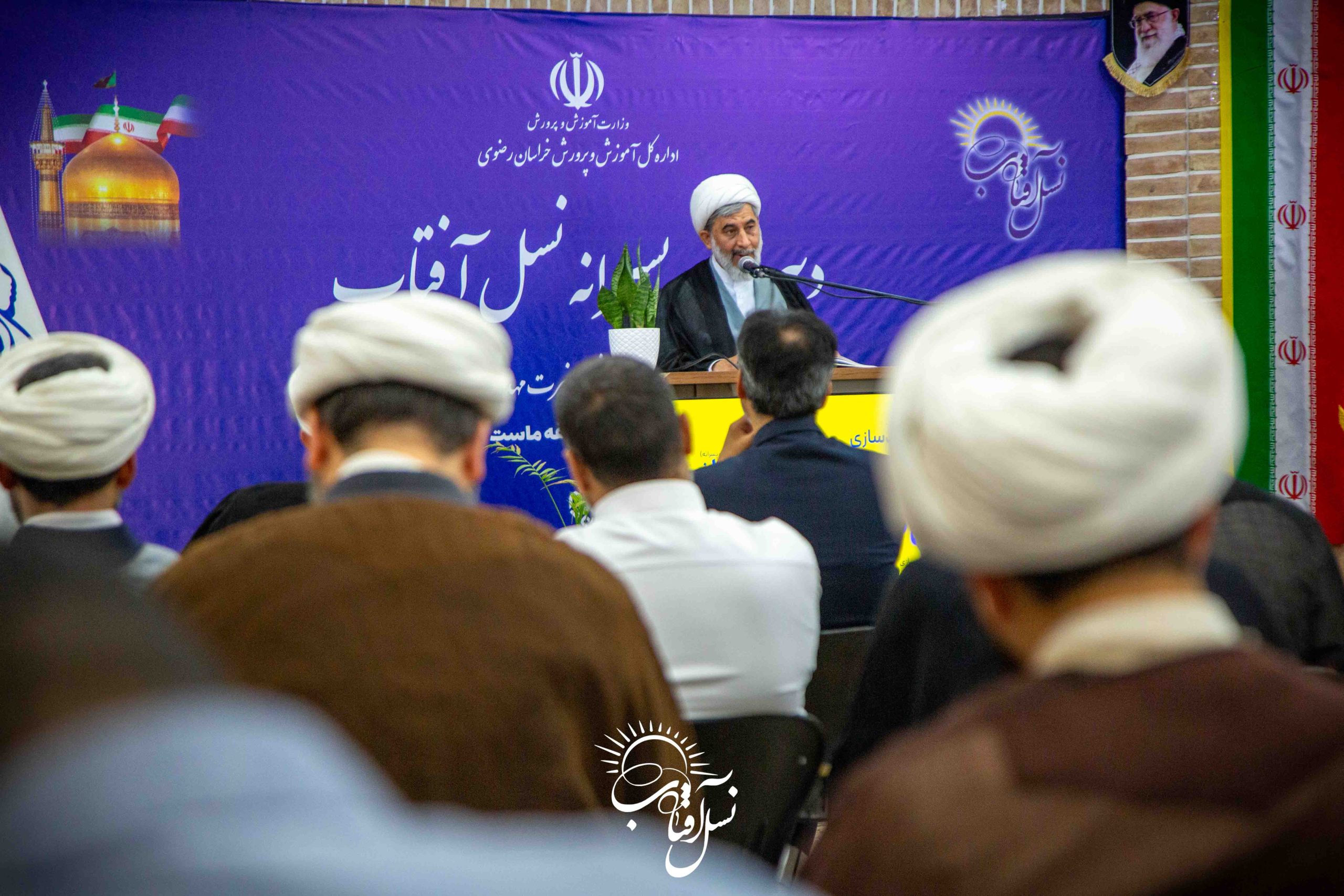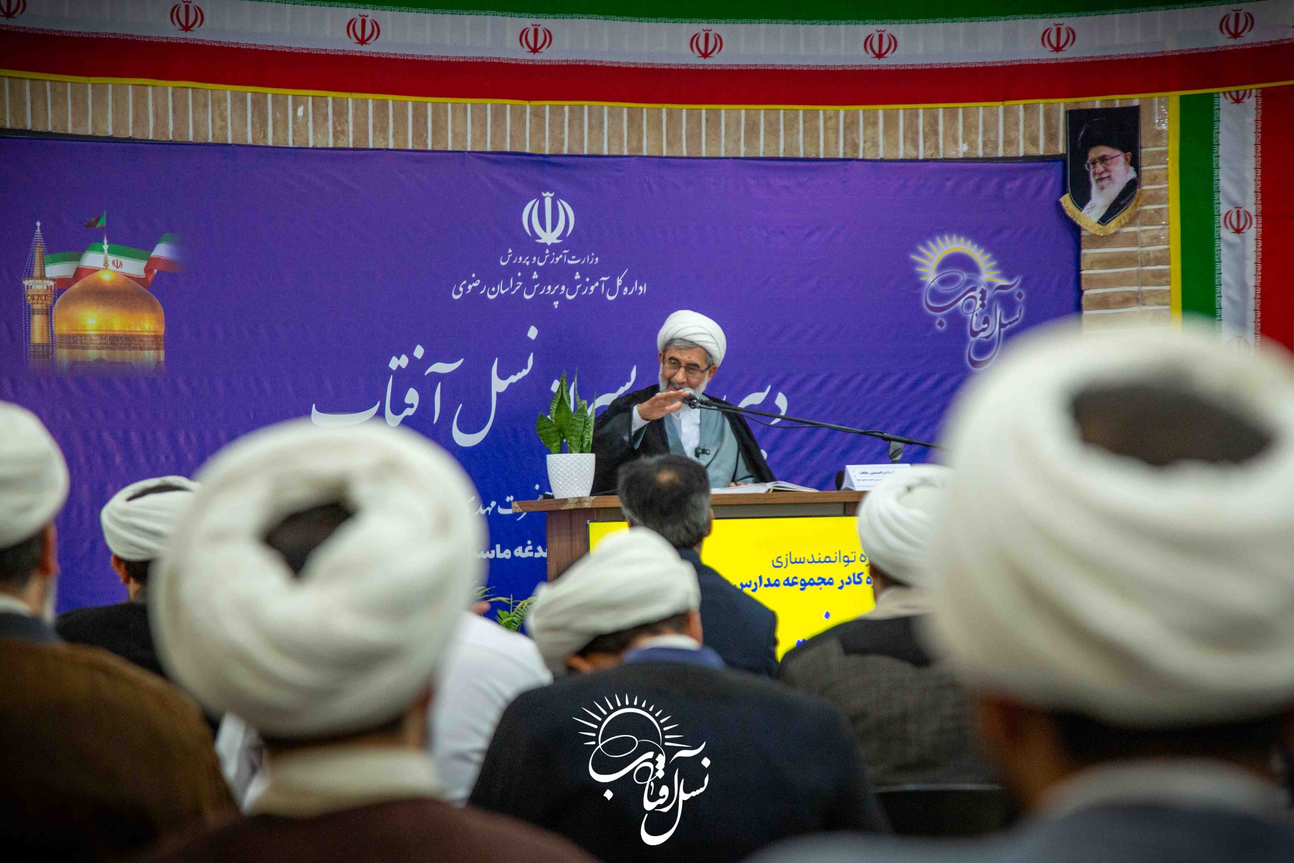 عضو شورای عالی حوزه علمیه خراسان همچنین بر ضرورت انسجام تیمی و همکاری بین معلمان و مدیران تأکید کرد و افزود: یک مدرسه موفق، مدرسهای است که معلمان و کادر اجرایی آن با همدلی، همافزایی و هدفگذاری روشن، مسیر آموزش و تربیت را همزمان دنبال کنند. در این دوره توانمدسازی لازم است این همافزایی تقویت شود و هر فرد از ظرفیتهای خود برای رشد دانشآموزان بهره ببرد.