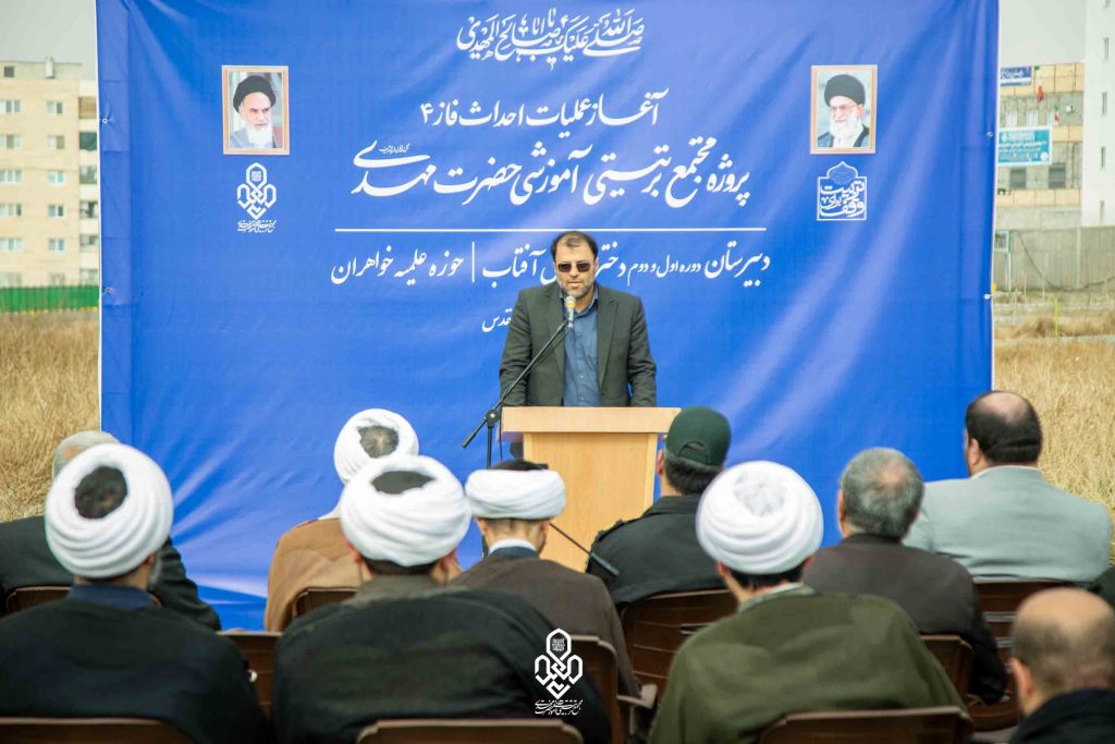 رئیس مجتمع حضرت مهدی (عج) ضمن اظهار خرسندی از اظهارات نائب رئیس شورای شهر مبنی بر ساخت شعبههای دیگر مجتمع حضرت مهدی (عج) یا مراکز فرهنگی مشابه در سایر نقاط مشهد مقدس، تصریح کرد: ما هدفمان تکثیر مجموعههای تربیت محور است یعنی حوزههای علمیه نباید سر در لاک باشند و ما در نظام جمهوری اسلامی قرار داریم بنابراین باید مدل جدیدی از ساخت حوزههای علمیه را ارائه دهیم، باید به تربیت افراد بها بدهیم. البته باید توجه کنیم که تربیت، اولویت اصلی باید قرار گیرد زیرا ما ساختمانساز نیستیم، ما قرار است آینده خودمان را آباد کنیم. حیف است در میدان عمل، تربیت نشویم.